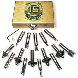 Product Description : Amazon.com Product Description : The MLCS 8377 router bit set is a perfect, economical, all-purpose starter set for your woodworking hobby. It has quality, carbide-tipped bits with 1/2-inch shanks and comes with a wood storage box. From the ManufacturerThis high-quality carbide tipped set includes a variety of bit sizes and styles: 4 straight bits (3/16-inch, 1/4-inch, 1/2-inch, 3/4-inch), 1 round over bit (3/8-inch), 1 cove bit (1/2-inch), 1 roman ogee bit (5/32-inch), 1 45-degree chamfer bit, 1 flushtrim bit (1/2-inch), 1 rabbeting bit (3/8-inch), 1 dovetail bit (1/2-inch x 14-degree), 1 V-groove bit (3/8-inch), 1 hinge mortising bit (1/2-inch), 1 panel pilot bit (1/4-inch), 1 round nose bit (1/4-inch), 1 allen wrench, and 1 bearing to convert round over bit into beading bit. It also comes with a sturdy wood storage box.