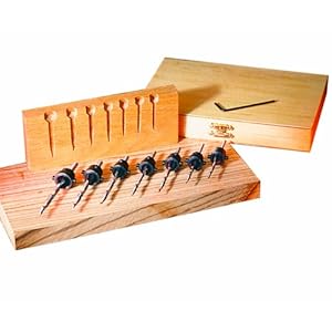 Category: Tools & Home Improvement Vendor: Drill precise, tapered holes for wood screws High quality set includes 7 drill bits for common sizes, 7 countersink heads and a