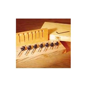 Product Description : From the ManufacturerA tapered hole grips a screw along its entire length, giving exceptional thread "bite" and less chance of a stripped hole from today's power screw drivers. set includes: 7 tapered bits (for the common screw sizes 5, 6, 7, 8, 9,10,12), seven matching countersink heads with adjustable stop collars, Allen key and wood storage box. Product Description : A tapered hole grips a screw along its entire length, giving exceptional thread 'bite', and less chance of a stripped hole from today's power screw drivers. Set includes: 7 tapered bits (for the common screw sizes 5, 6, 7, 8, 9,10,12), seven matching countersink heads with adjustable stop collars, Allen key and wood storage box.Includes 7 drill bits for most common screw sizesHigh quality high speed steel constructionAllen key and wood storage box Included.