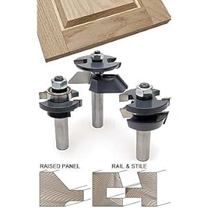Product Description : This professional quality 3 piece set features 1/2" shank router bits with carbide cutters. The Shaker philosophy was to remove unnecessary ornament and to find "beauty in utility". Shaker furniture reflected an ethic of modesty, equality, order and harmony. Use with wood stock up to 3/4" thickness. Set includes: 1.) Shaker Raised Panel with Undercutter Bit: Put a simple but timeless edge on the free floating raised panel in your door. 2-1/2" large diam. 1-1/4" depth of cut. 2.) Matched Rail & Stile 2 Piece Set creates precisely mated rail and stiles that form a very durable frame. 1-5/8" large diam. All Bits 1/2" Shank.